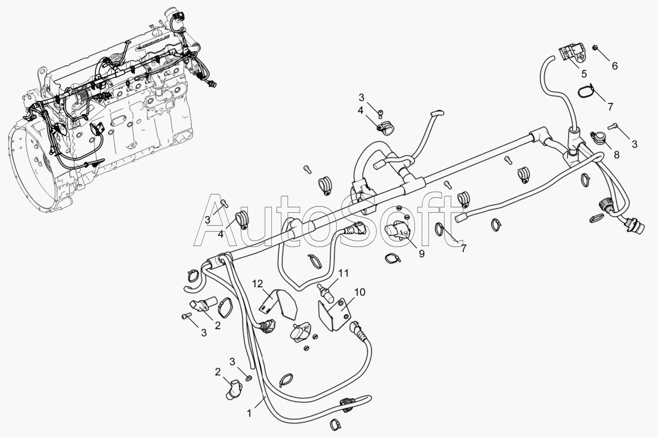 ЯМЗ | ЯМЗ-536-100 (2014) | 536.3724012 | Жгут датчиков | Жгут датчиков (Двигатель ЯМЗ-536-10) |
