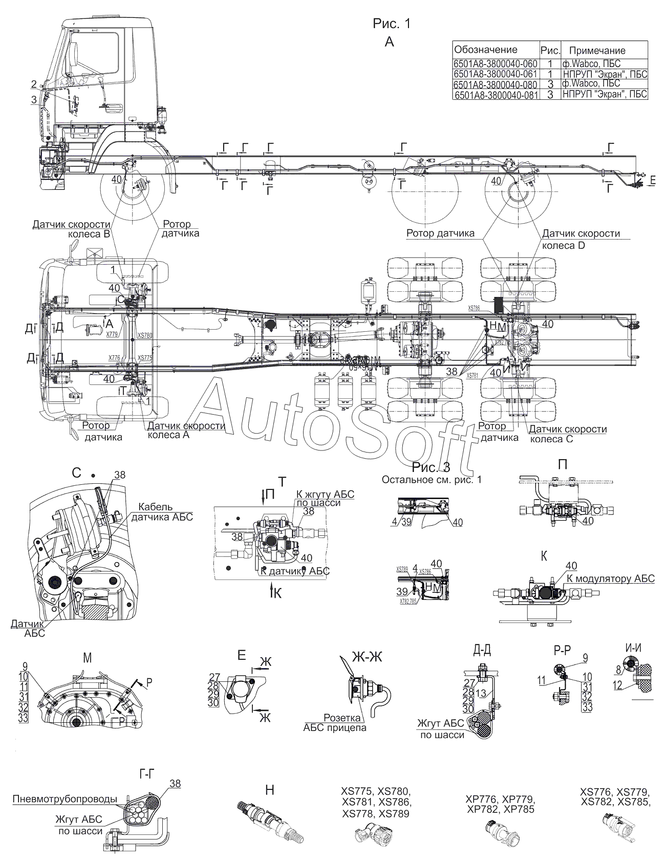 МАЗ | МАЗ-6501B9 (2014) | 6312А8-3724760 | Жгут АБС по шасси | Установка электрооборудования АБС тормозов |