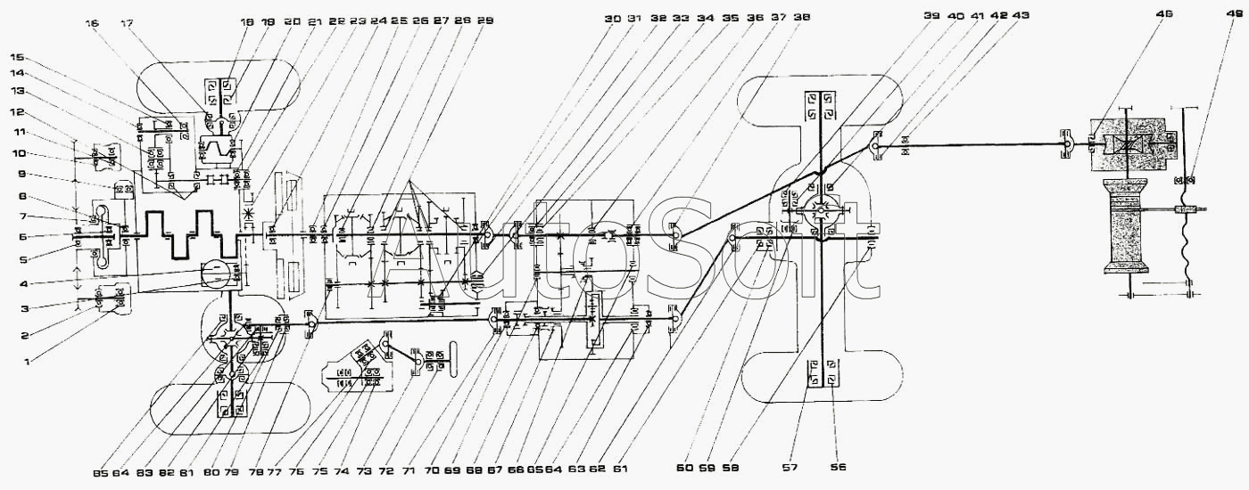Камский автозавод | 4326 (2001) | 12310КМ | Подшипник роликовый радиальный с короткими цилиндрическими роликами ГОСТ 520-89 | Кинематическая схема трансмиссии 4326 |