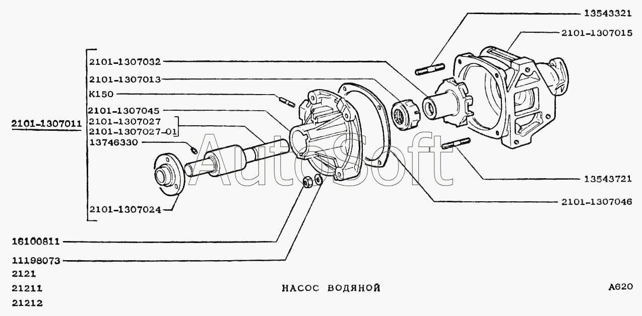 | ВАЗ | ВАЗ-2102 (1982) | 2101-1307011 | Насос водяной | Насос водяной | |