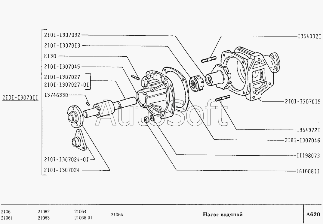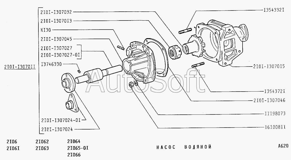 | ВАЗ | ВАЗ-2101 (1982) | 2101-1307011 | Насос водяной | Насос водяной | |