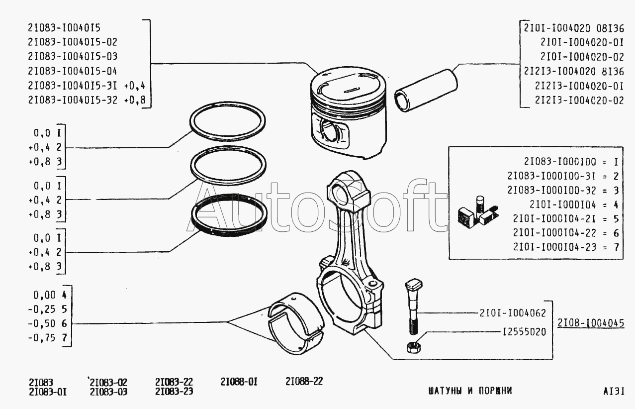 | ВАЗ | ВАЗ-2107 (1990) | 21083-1000100 | Комплект колец 0,0 | Шатуны и поршни | |
