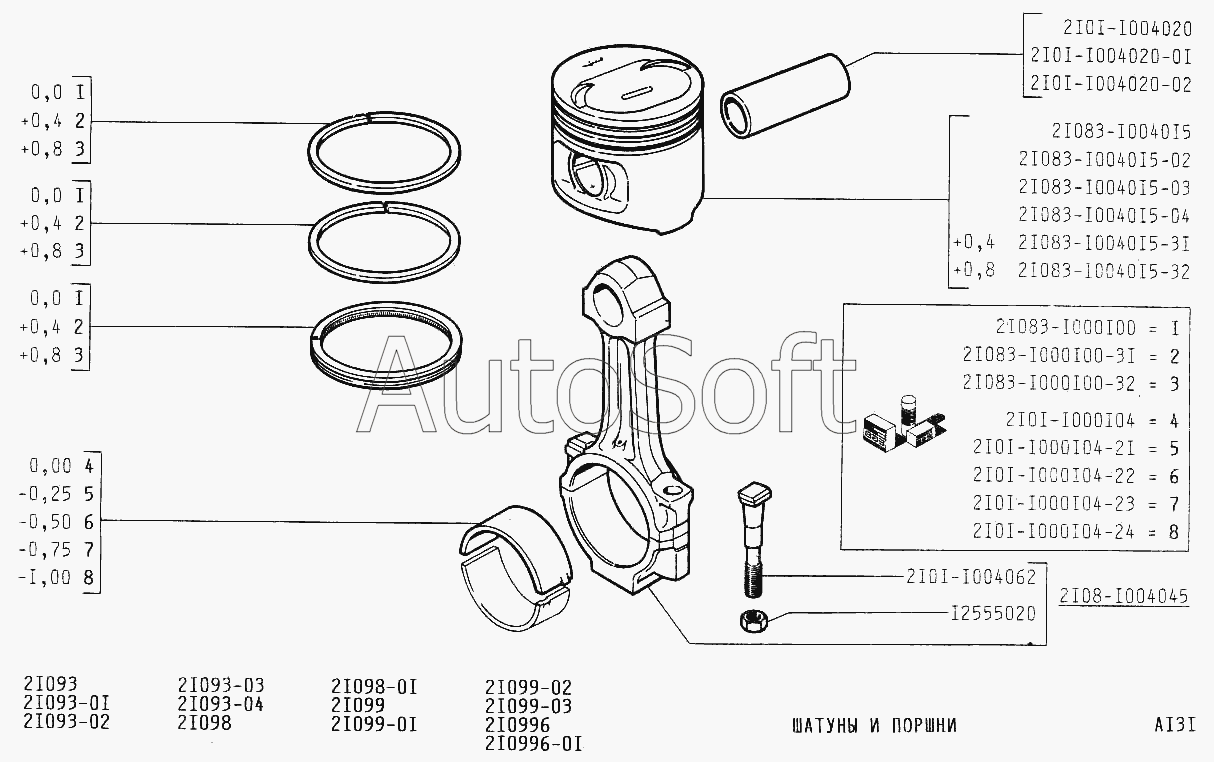 | ВАЗ | ВАЗ-2109 (1991) | 21083-1000100 | Комплект колец 0,0 | Шатуны и поршни | |