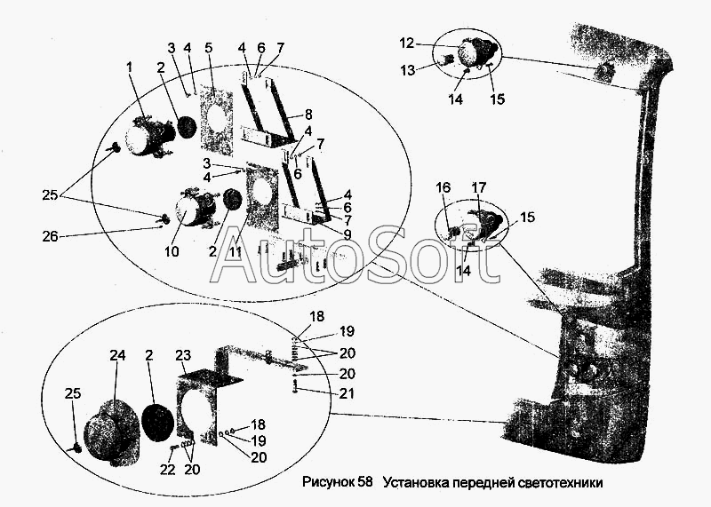 | АМАЗ | МАЗ-256 (вариант) (2006) | 256-3711220 | Основание внешнее | Установка передней светотехники | |