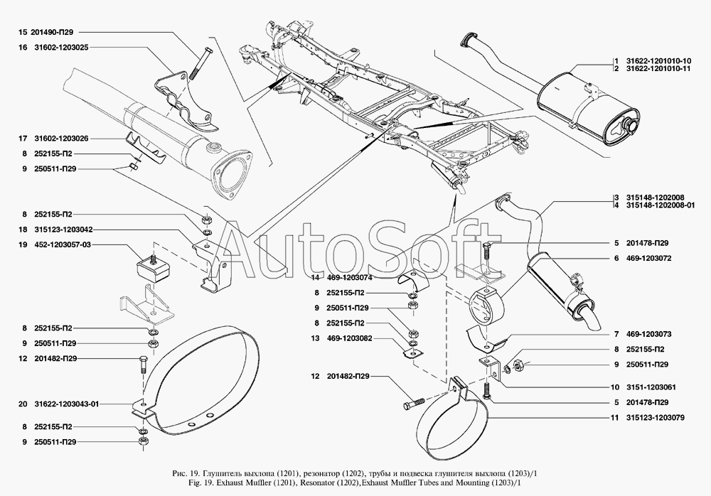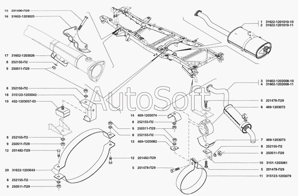 | УАЗ | УАЗ-31519 (2007) | 31622-1203043-01 | Хомут подвески глушителя | Глушитель выхлопа | |