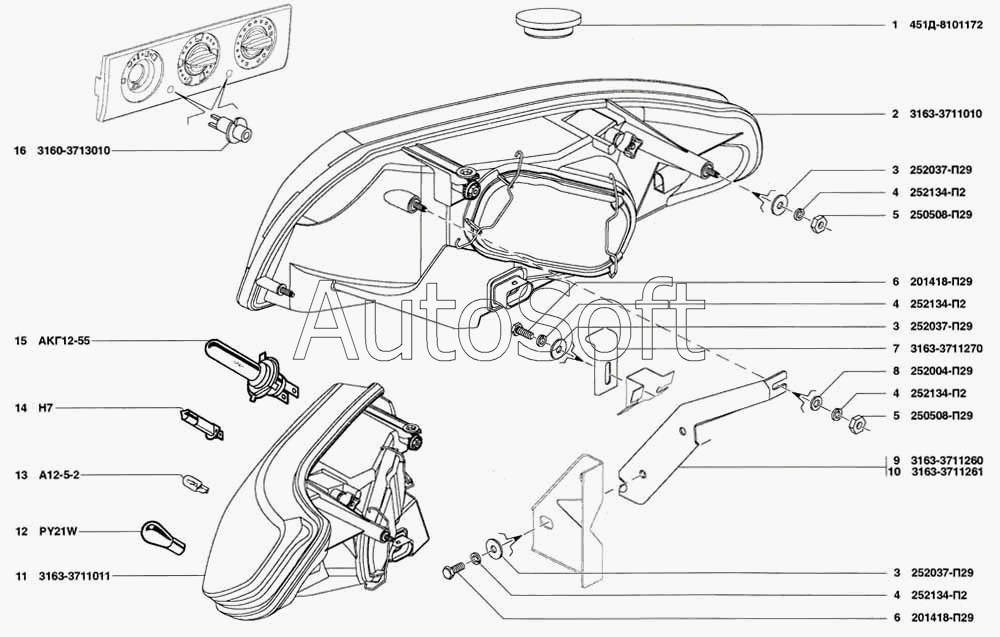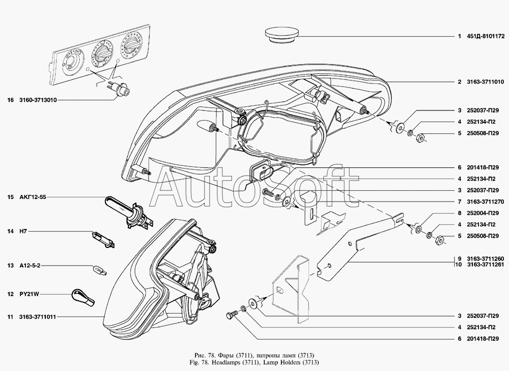 | УАЗ | UAZ Patriot (2007) | 3163-3711010 | Блок-фара правая АLRU.676512.004 | Фары, патроны ламп |