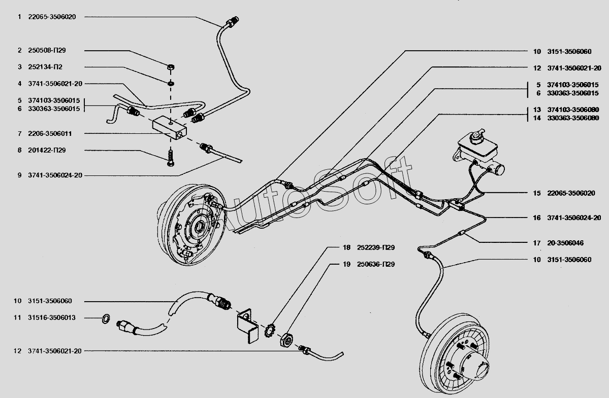 Трубка 3741-3506024-20, группа: 35 — Тормозная система УАЗ , 3741-3506024-20.