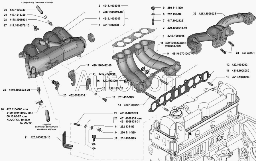 | УМЗ | УМЗ-4216 (Евро 3) (2008) | 420.1008018-10 | Прокладка ресивера | Газопроводы впускной и выпускной |