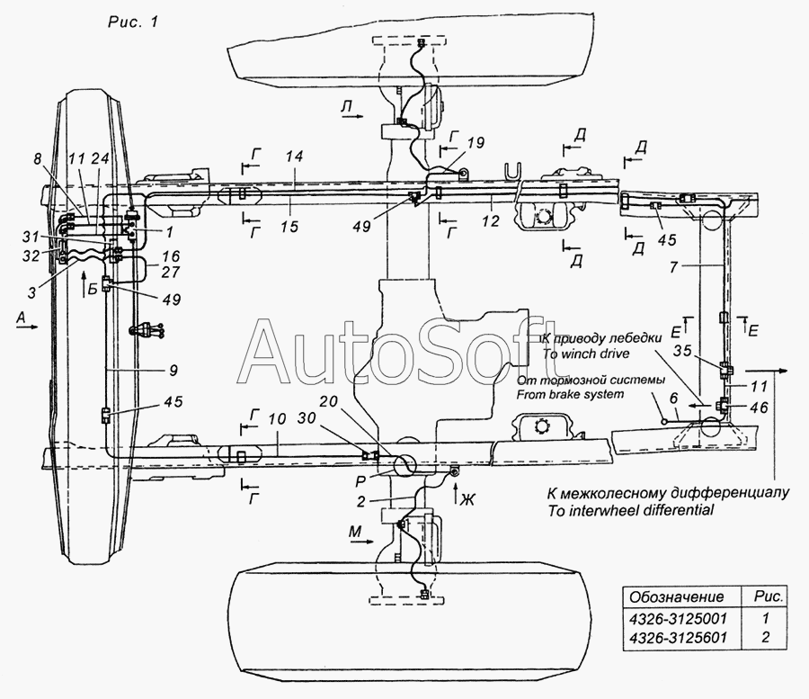 4310-3125050 Шланг системы накачки передних колес (L=900 мм) ГА