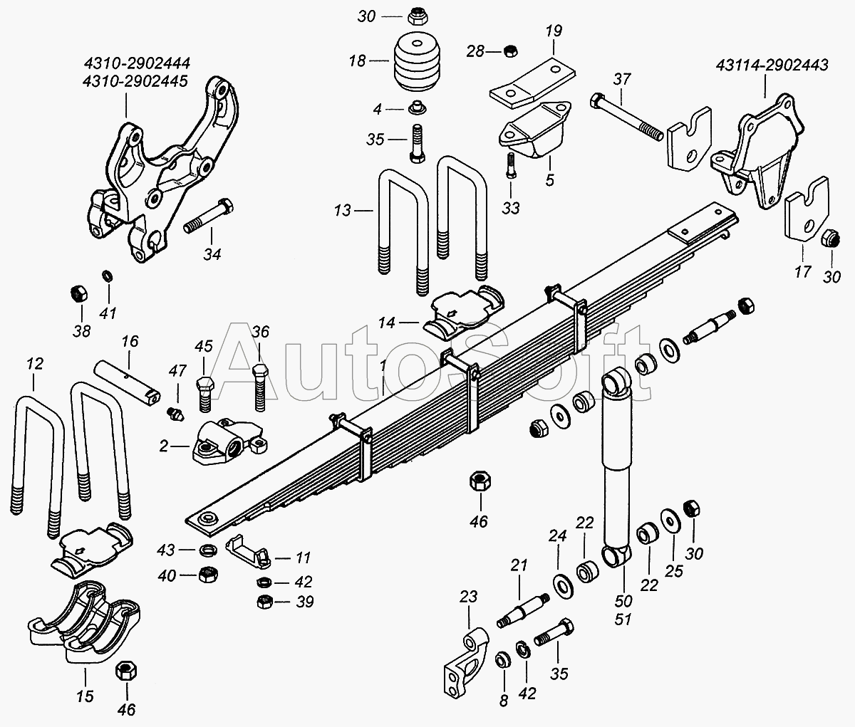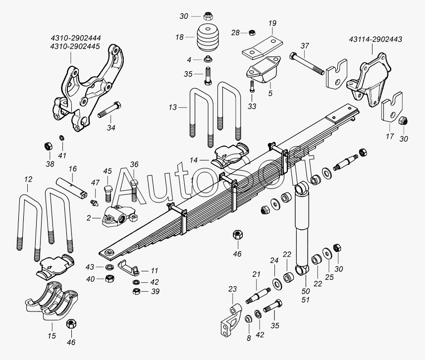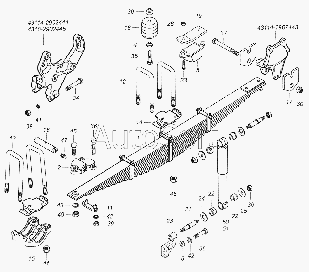 Камский автозавод | 43501 (4х4) (2007) | 5320-2902478 | Палец ушка | 43114-2900001 Подвеска передняя в сборе |