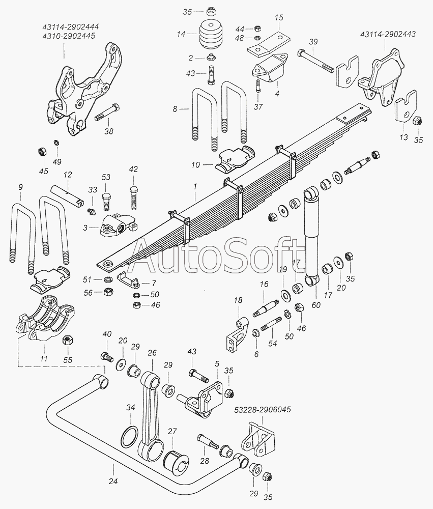 Камский автозавод | 53229 (Евро 2) (2010) | 43114-2902478 | Палец ушка | 53229-2900001-10 Установка передней подвески | |