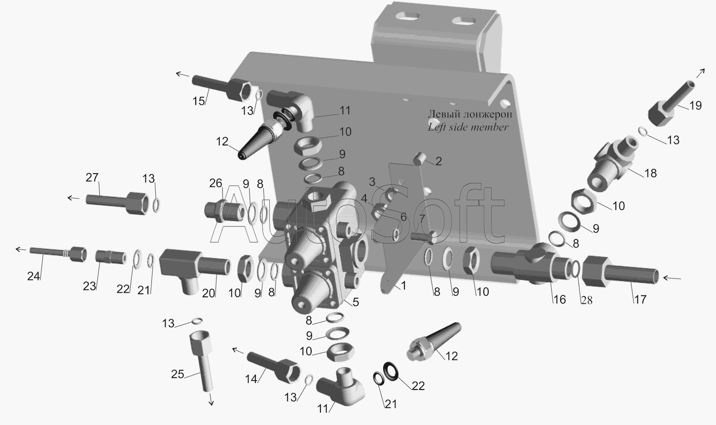 | МАЗ | МАЗ-437040 (Зубренок) (2005) | 4370-3506148 | Трубка | Крепление четырехконтурного клапана |