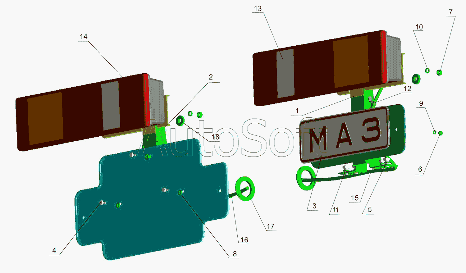 | МАЗ | МАЗ-437040 (Зубренок) (2002) | 437040-3716015 | Кронштейн заднего фонаря левого | Установка задних фонарей | |