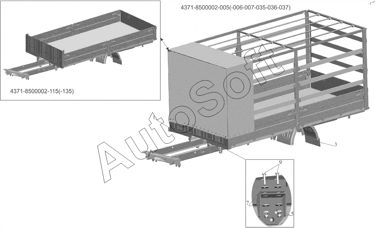 | МАЗ | МАЗ-437043 (Зубренок) (2011) | 4371-8501010-031 | Основание | Платформа 4371-8500020-030 (-010,-011,-012,-031,-032) (борта и стойки) | |