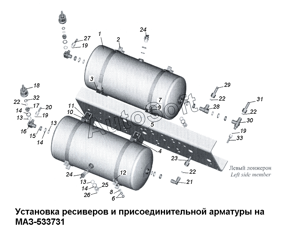 | МАЗ | МАЗ-533731 (2012) | 514-3513078 | Кронштейн | Установка ресиверов и присоединительной арматуры МАЗ-533731 |