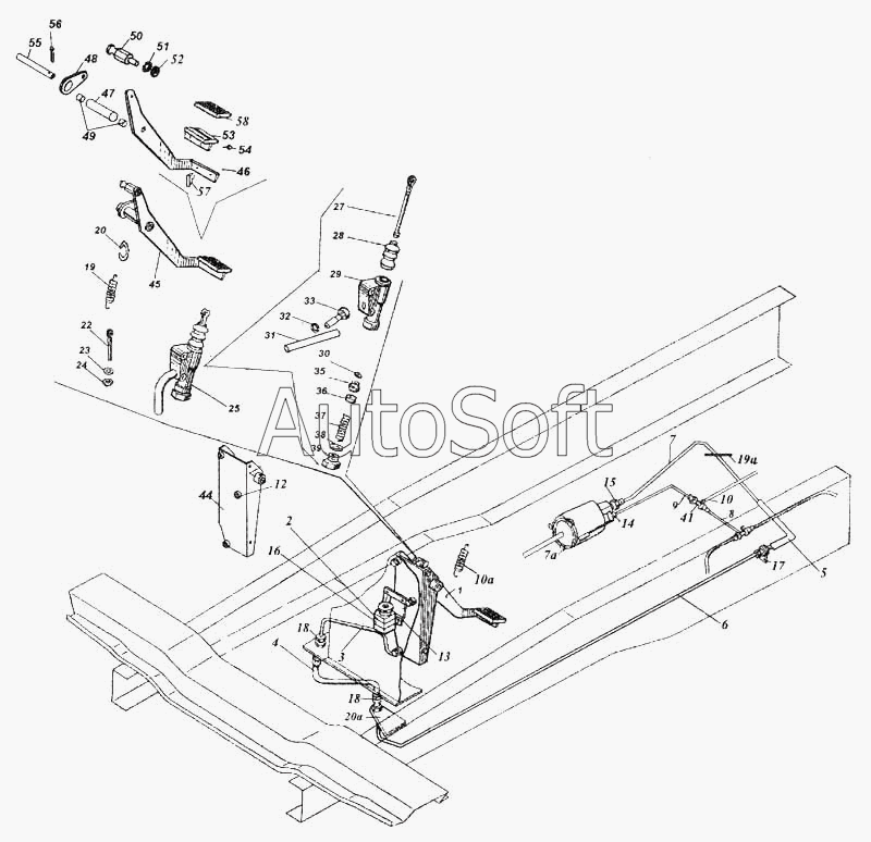 | Камский автозавод | 6520 | 5320-1602510-10 | Главный цилиндр управления сцеплением в сборе | Установка педали и привода выключения сцепления |