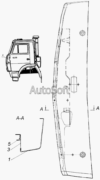 | Камский автозавод | 5410 | 5320-5301047 | Панель передка боковая съемная левая в сборе | Передок кабины в сборе |