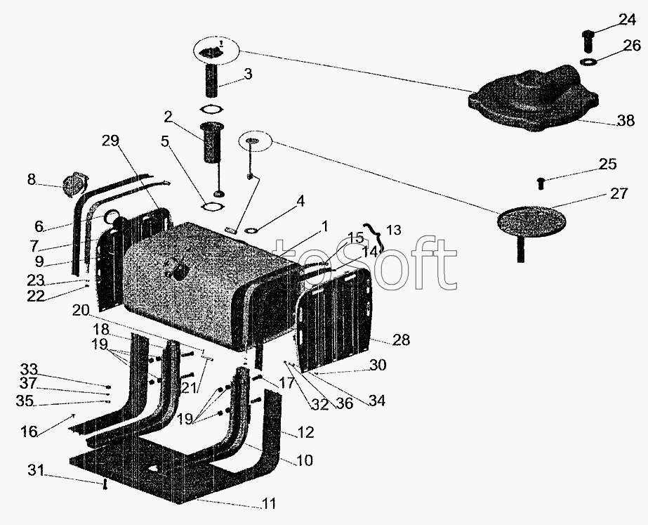 | МАЗ | МАЗ-5336 (2005) | 5337-1101200 | Экран защитный | Крепление топливного бака (с ограждением) на МАЗ-533702 | |