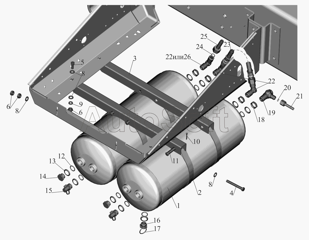 | МАЗ | МАЗ-631019 (2014) | 534003-3513076 | Кронштейн | Крепление ресиверов 534003-3513004 |