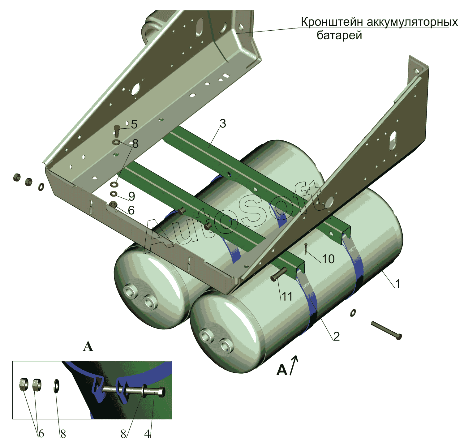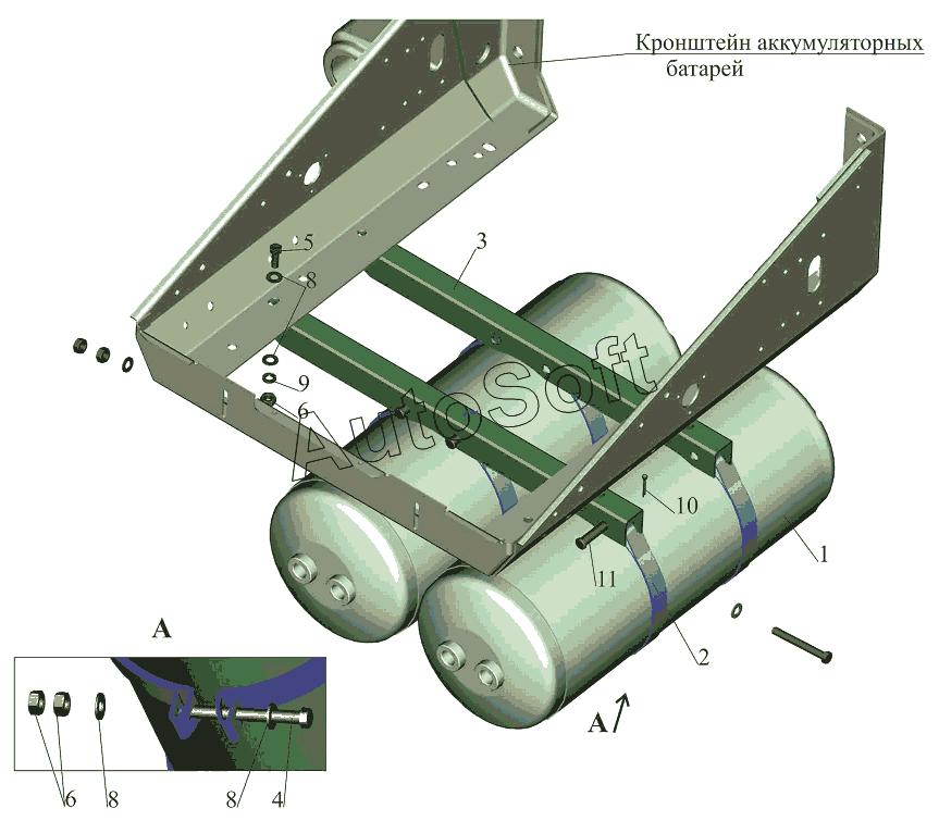 | МАЗ | МАЗ-5550V3 (V5) (2011) | 534003-3513076 | Кронштейн | Крепление ресиверов 534003-3513004 |