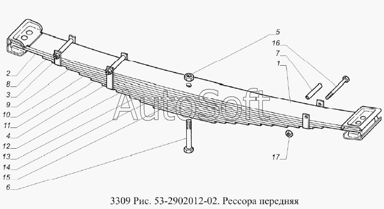 | ГАЗ | ГАЗ-3309 | 53А-2902015 | Лист № 1 передней рессоры с чашками в сборе | Подвеска передняя, рессоры | |