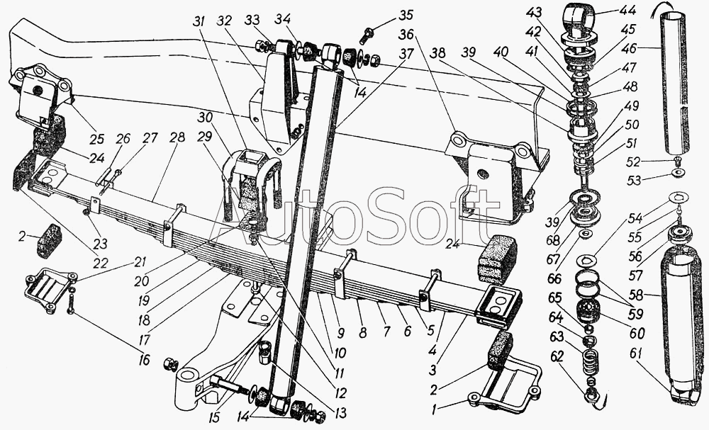 | ГАЗ | ГАЗ-53 А (1989) | 53А-2902015 | Лист № 1 передней рессоры с чашками в сборе | Передние рессоры и амортизаторы передней подвески |