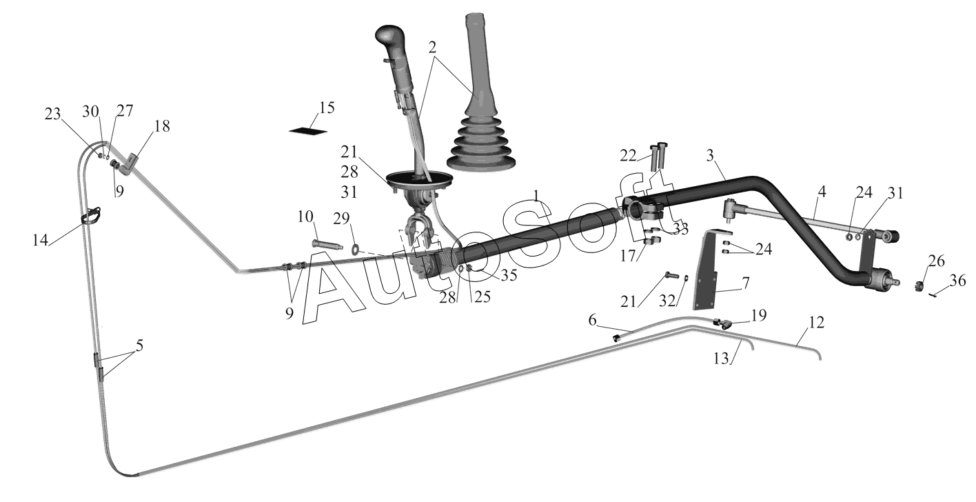 МАЗ | МАЗ-642208, МАЗ-642205, МАЗ-543208 (2005) | 63031-1703448-010 | Хвостовик в сборе | Привод управления коробкой передач |