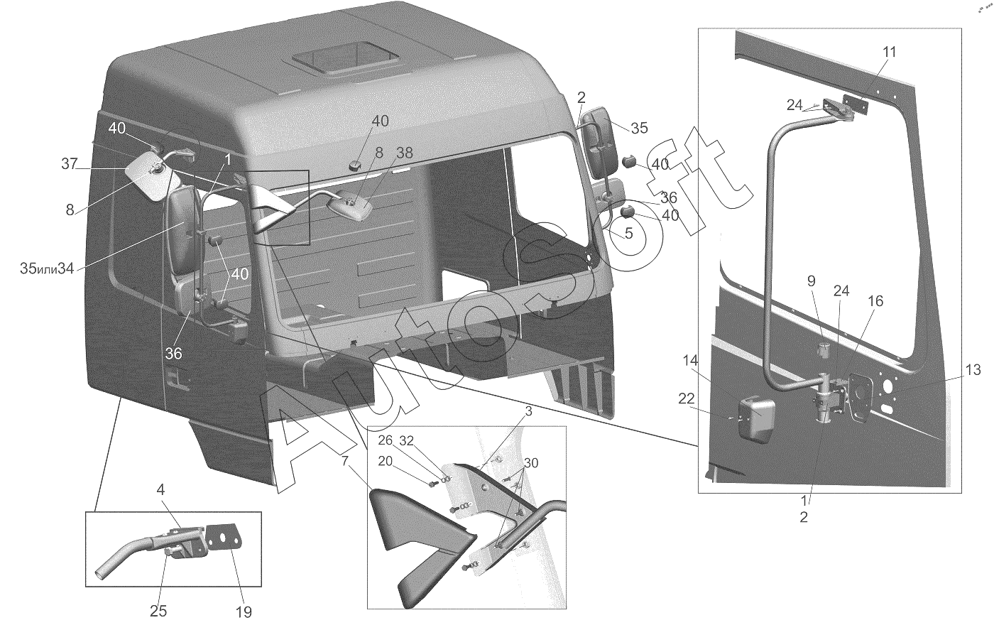 | МЗКТ | МЗКТ-700600-011 (2013) | 54327-8201109 | Прокладка | Установка держателей зеркал |