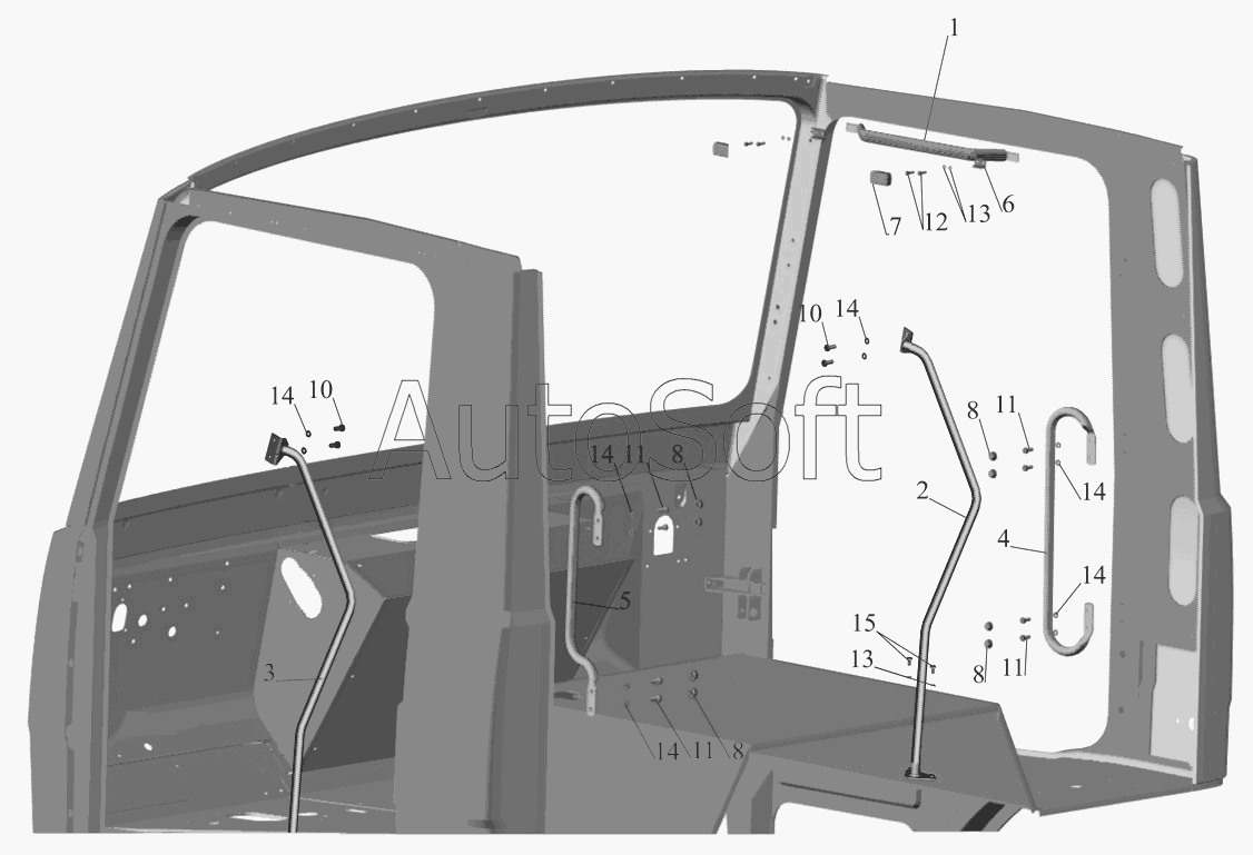 | МАЗ | МАЗ-630333 (2012) | 54327-8202051 | Поручень левый | Установка поручней в кабине 64221-8200030-10 |