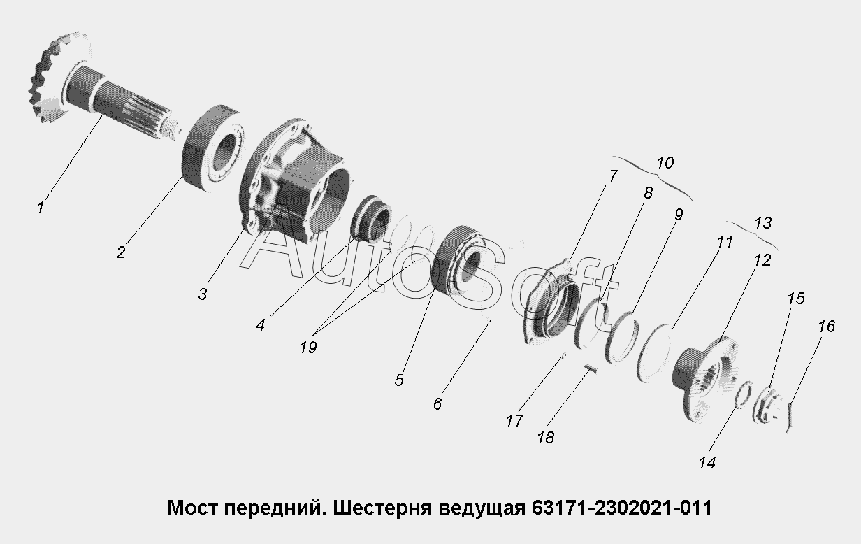 | МАЗ | МАЗ-543403, 641705, 641708 (2010) | 5434-2302021-011 | Шестерня ведущая в сборе U=7.79 | Мост передний. Картер | |