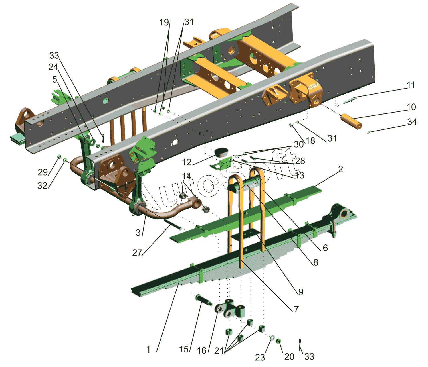 Стремянка 5434-2912408 задней рессоры (L-560мм, гайка М27) МАЗ | |