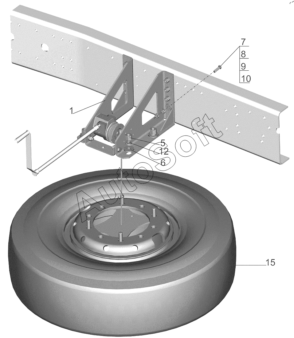 | МАЗ | МАЗ-6501B9 (2015) | 5440-3101011-750 | Колесо и шина | Установка запасного колеса |