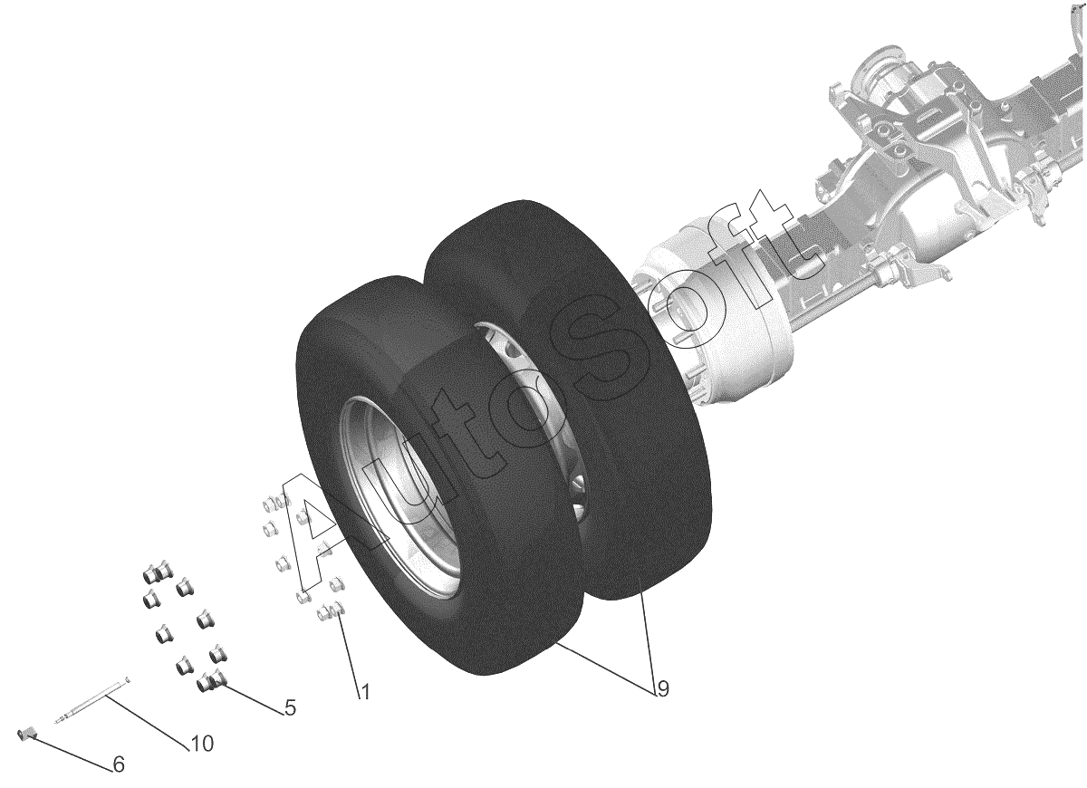 | МАЗ | МАЗ-6430A8 (5440A8, 5440A5) (2008) | 5440-3101011-750 | Колесо и шина | Установка задних колес |
