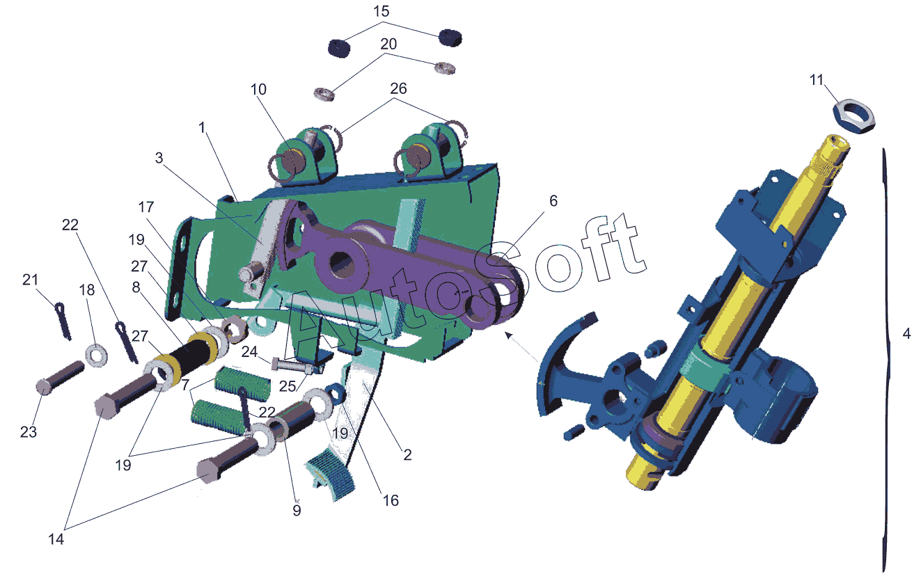 | МАЗ | МАЗ-631019 (2014) | 5440-3403051-010 | Сектор-рычаг | Кронштейн с колонкой 5440-3403008 |