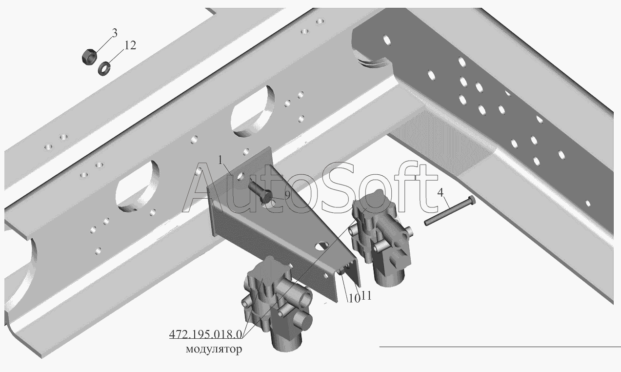 | МАЗ | МАЗ-5440B9, 6430B9 (2013) | 5440-3538020 | Кронштейн | Крепление модуляторов 5440А8-3538004 |