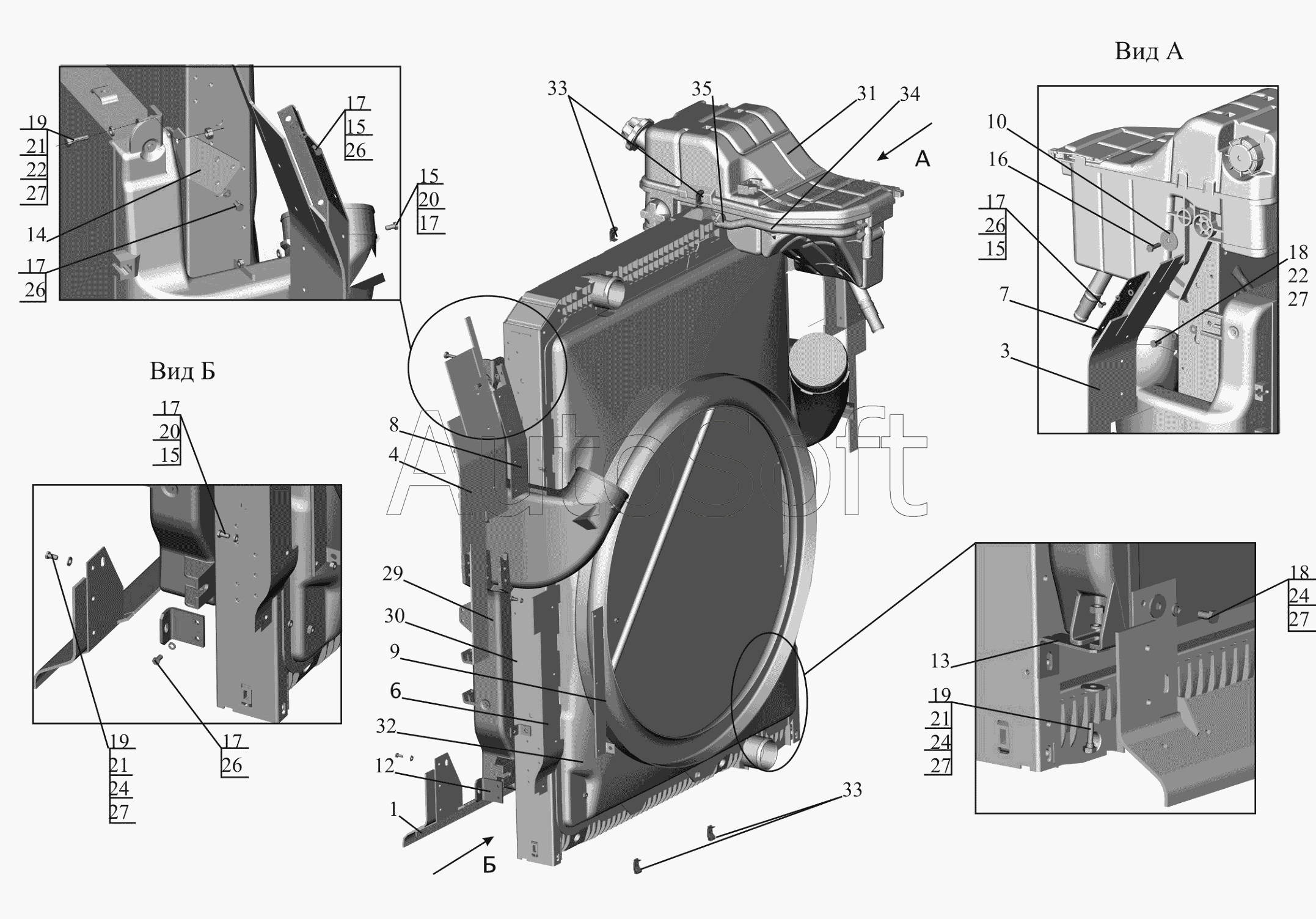 | МАЗ | МАЗ-631019 (2014) | 544019-1323145 | Кронштейн | Радиатор с кожухом 544019-1301009 | |