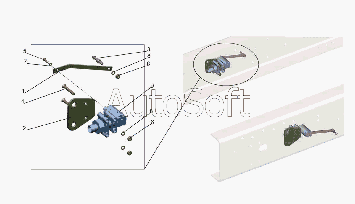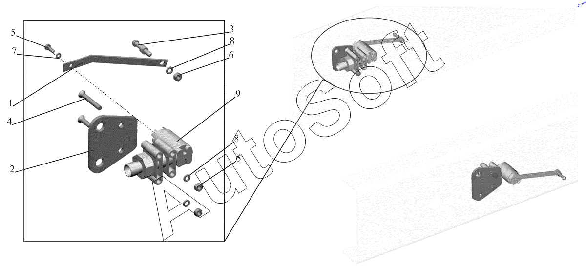 | МАЗ | МАЗ-5440E9 (2011) | 544019-2935030 | Кронштейн | Установка датчиков перемещения ECAS 544019-2935006 |