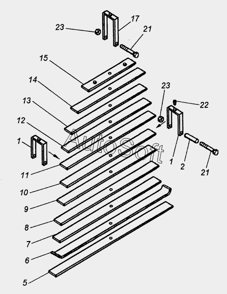 | Камский автозавод | 43501 (4х4) (2007) | 55111-2912101-02 | Лист задней рессоры | 5322-2912012-02 Рессора задняя в сборе |