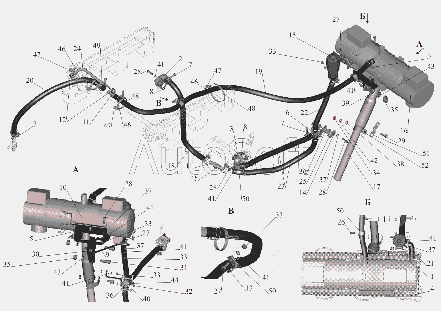 | МАЗ | МАЗ-6303A3, 6303A5 (2007) | 5516-1015030 | Труба выхлопная | Установка подогревателя |