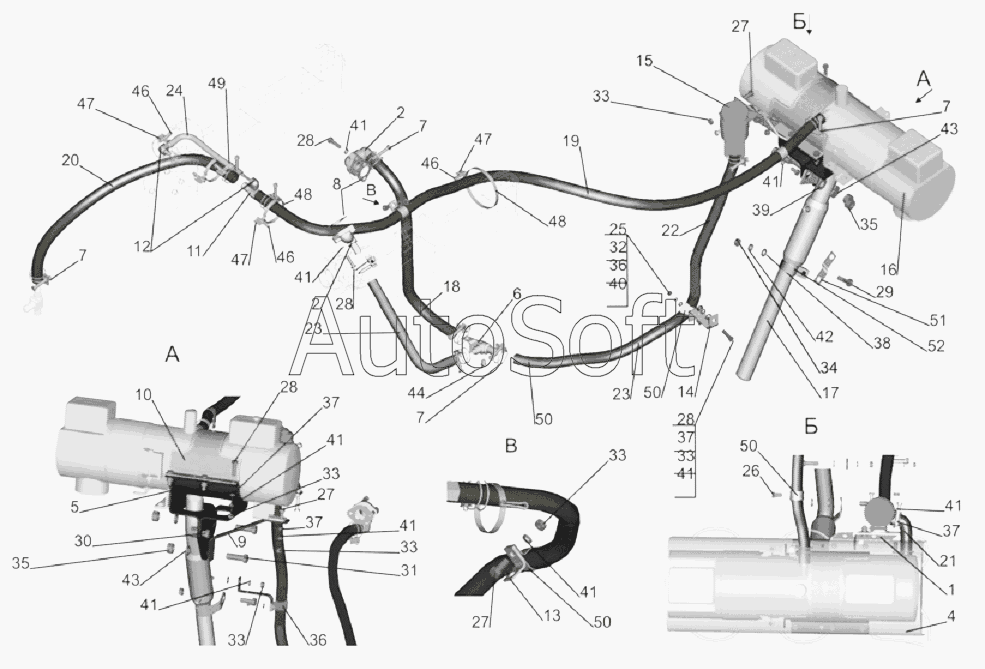 | МАЗ | МАЗ-6303A3, 6303A5 (2007) | 5516-1015030 | Труба выхлопная | Установка подогревателя | |