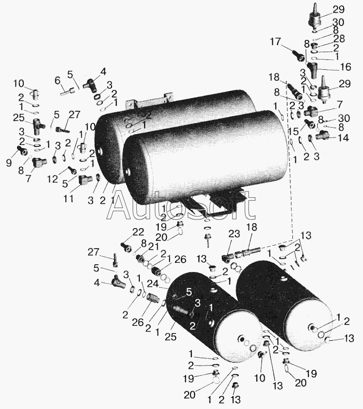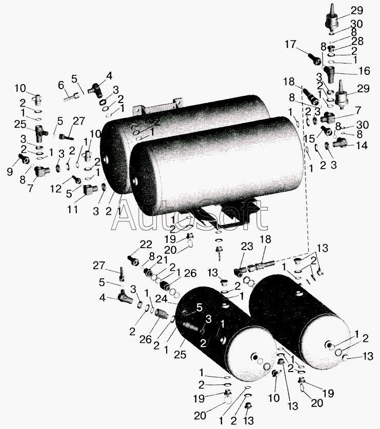 Установка присоединительной арматуры на ресиверах МАЗ-551605, 551603