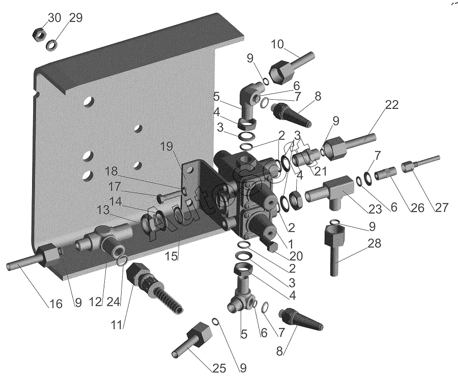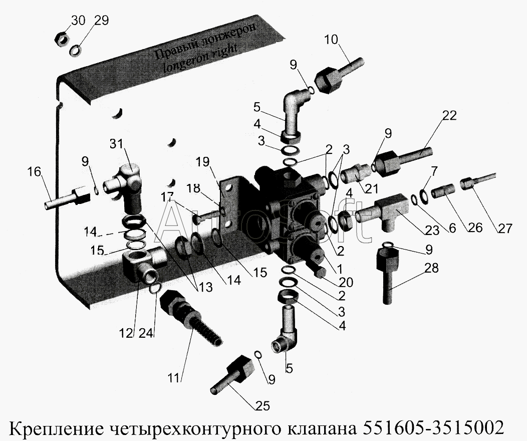| МАЗ | МАЗ-642208, МАЗ-642205, МАЗ-543208 (2005) | 551605-3506130-010 | Трубка к клапану контрольного вывода на передней поперечине | Крепление четырехконтурного клапана МАЗ-551605, 551603 |