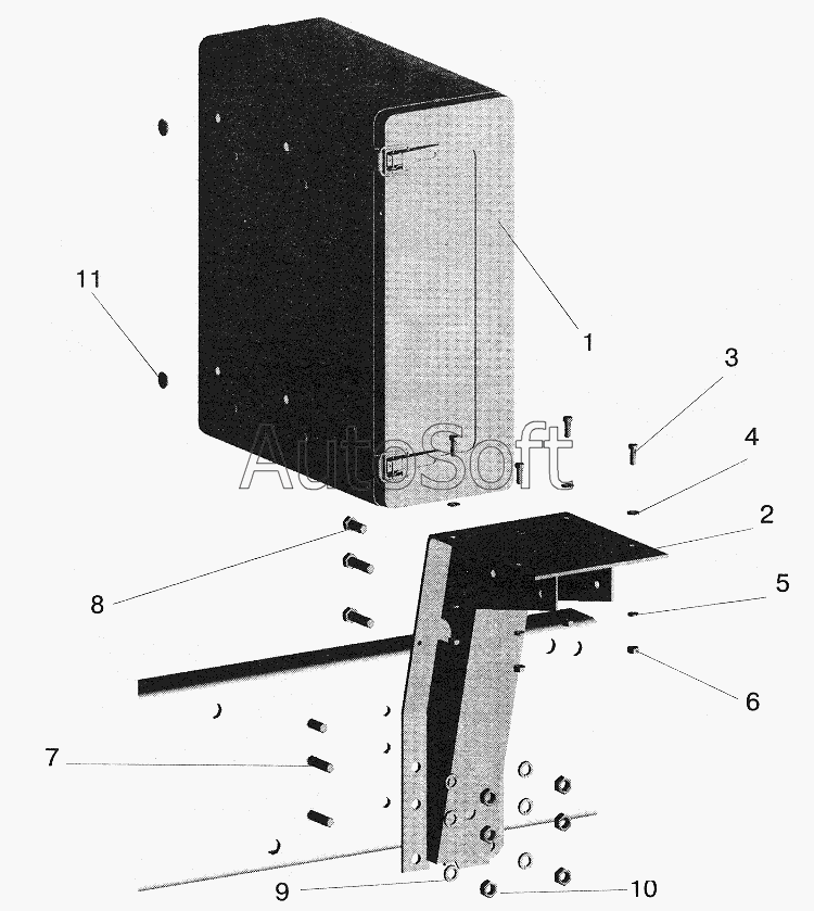 | МАЗ | МАЗ-5551 | 5551-8507140 | Кронштейн в сборе | Установка инструментального ящика МАЗ-5551 |