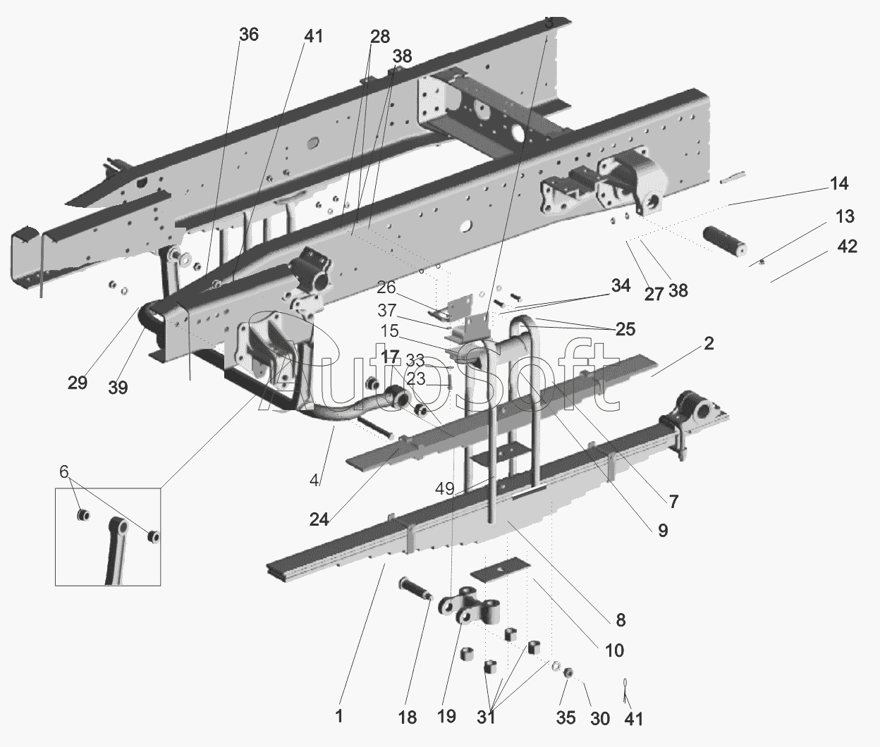| Рессора задняя (13 листов, L=1600мм, накладное ухо) МРЗ | |