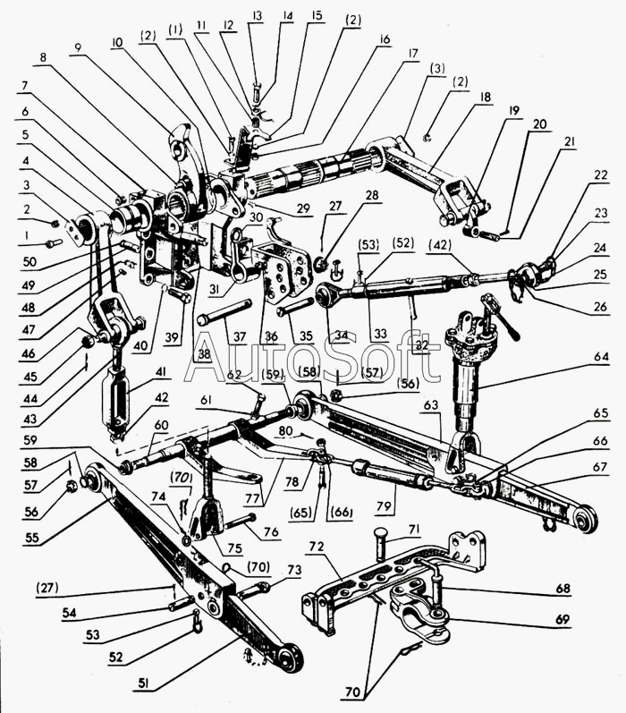 | Ось тяг нижней задней навески | |