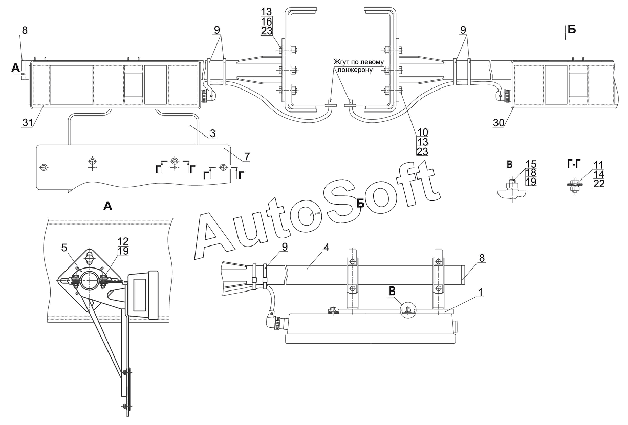 | МАЗ | МАЗ-631019 (2014) | 631019-3716044 | Кронштейн номерного знака | Установка задних фонарей 631019-3700009 |