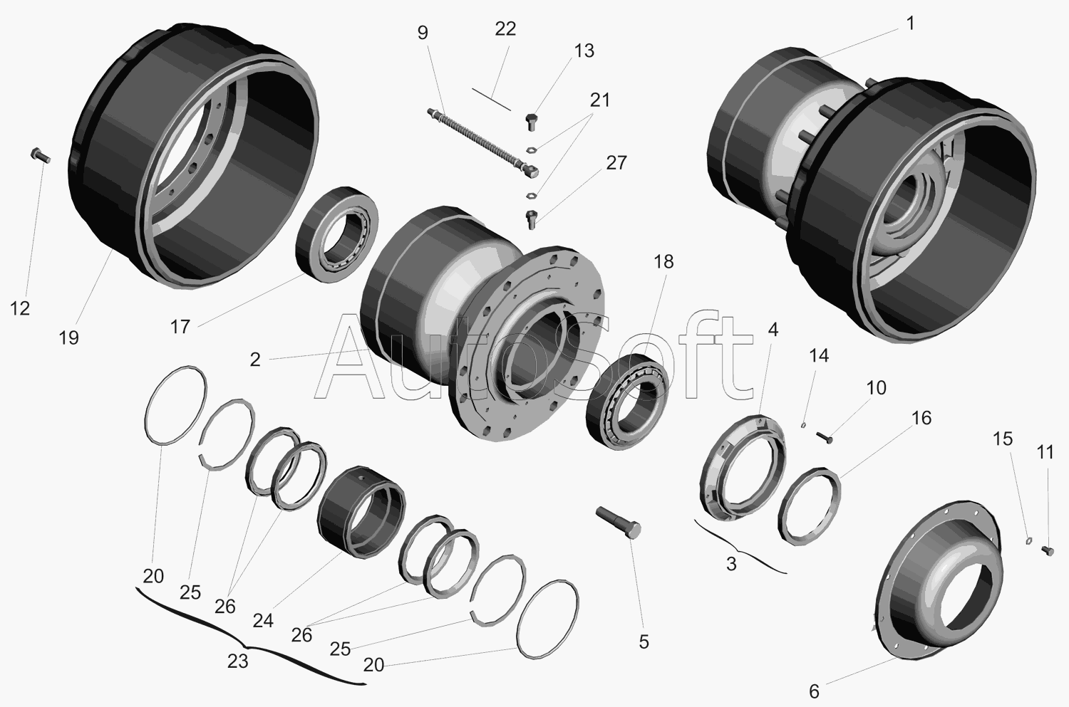 | МАЗ | МАЗ-631705 (2010) | 6317-3124017 | Кольцо | Ступица моста с головкой ЦНШ |