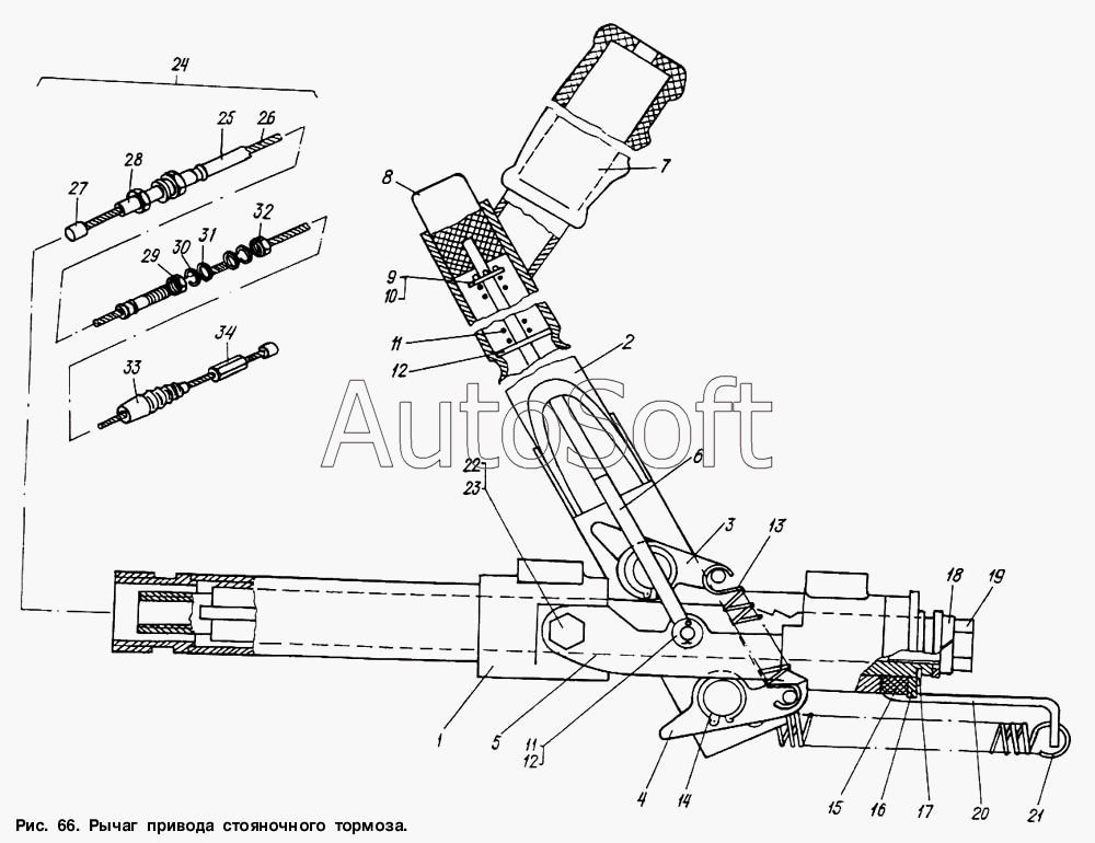 МАЗ | МАЗ-631705 (2010) | 6317-3508150 | Трос стояночного тормоза | Установка привода стояночного тормоза 6317-3500006 |