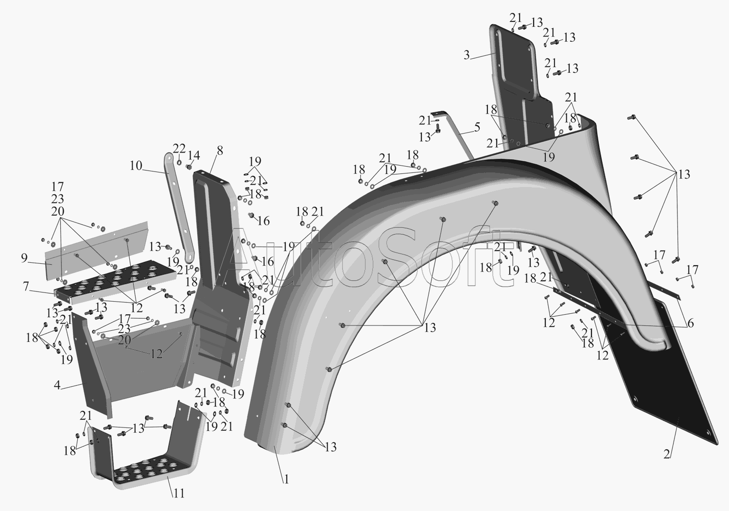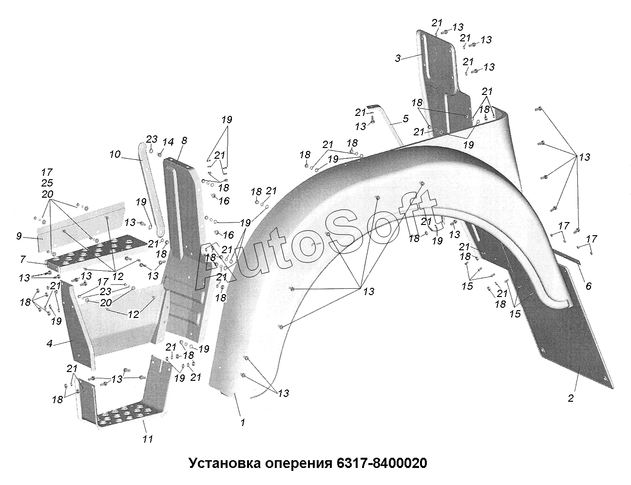 | МАЗ | МАЗ-6317 | 6317-8405033 | Панель левая | Установка крыльев брызговиков и подножек |