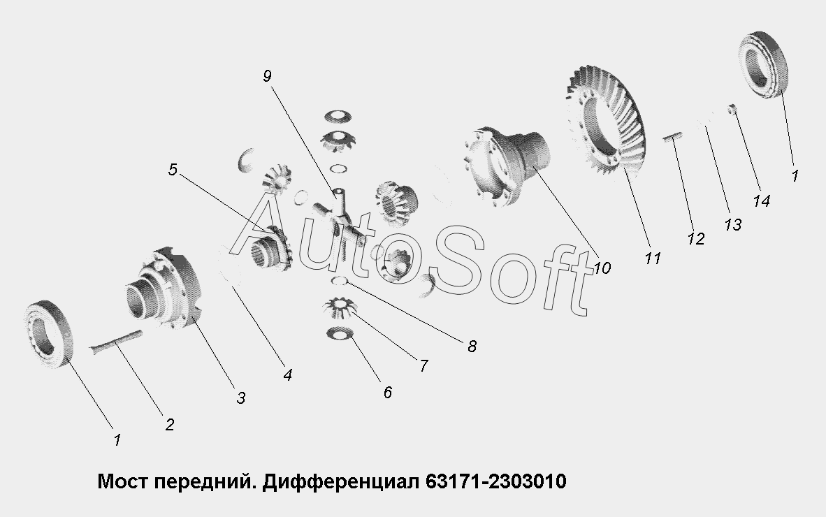 | МАЗ | МАЗ-543403, 641705, 641708 (2010) | 63171-2303010 | Дифференциал | Мост передний. Картер | |